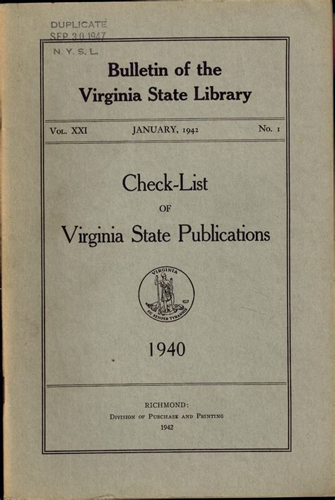 Bulletin of the Virginia State Library PDF By Click Button. Bulletin of the Virginia State Library it’s easy to recommend a new book category such as Novel, journal, comic, magazin, ect. You see it and you just know that the designer is also an author and understands the challenges involved with having a good book. You can easy klick for detailing book and you can read it online, even you can download it